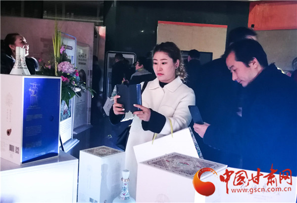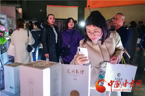 與(yu)會嘉賓為(wei)花開敦(dun)煌(huang)產品拍(pai)照(zhao)