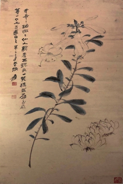 張大(da)千(qian)是美食家,他云游海內外,所以百味(wei)雜融。當他吃到如(ru)此美味(wei)的(de)百合,贊(zan)不絕(jue)口。后來,他曾(ceng)為甘(gan)肅莊浪縣人(ren),參加過護法戰爭的(de)楊(yang)(yang)尊一繪有(you)《百合圖(tu)(tu)》相贈。張大(da)千(qian)繪贈楊(yang)(yang)的(de)《百合圖(tu)(tu)》,只見長幅上一株百合以較(jiao)大(da)的(de)弧形縱呈畫(hua)面,枝(zhi)葉紛披,花朵橙紅嬌艷(yan),鱗莖碩大(da),張大(da)千(qian)還題跋曰:“云希希,煙微(wei)微(wei),仙人(ren)新著五銖衣,一笑(xiao)嫣然喜(xi)玉扉。”這段題跋很美,意思是說:云煙稀微(wei)縹緲(miao),畫(hua)中的(de)百合花剛(gang)剛(gang)開放像是仙女(nv)穿上了光彩(cai)奪目的(de)仙衣,在美麗(li)的(de)笑(xiao)容中開門(men)(迎接觀者)。如(ru)今這幅畫(hua)珍藏于甘(gan)肅省博物館中。