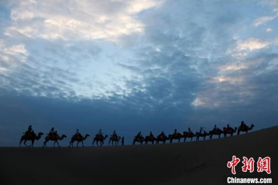 圖為敦煌大(da)漠晨光引客“畫中游”。 張曉亮 攝