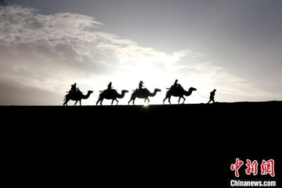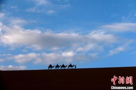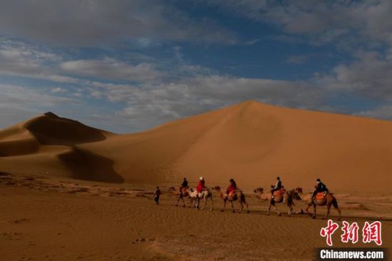 圖(tu)為(wei)敦(dun)煌大漠晨光引(yin)客“畫中(zhong)游”。 張曉亮(liang) 攝