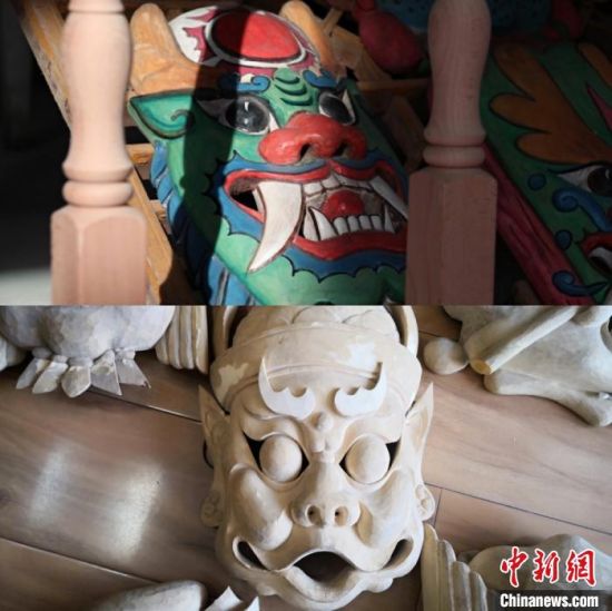 一副(fu)面(mian)具的完成要(yao)(yao)經(jing)過選材、粗坯、細坯、打磨、刮灰、刷底、上漆、裝飾等十幾道(dao)工序。任勤卓說,彩繪和上色最考(kao)驗匠人的功夫,講(jiang)究(jiu)“一筆定精準”,并(bing)且(qie)顏色要(yao)(yao)與古代相似(si),否(fou)則面(mian)具會失去質感。