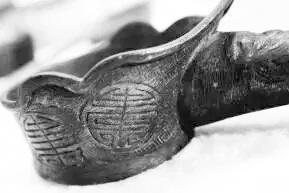 讓我們(men)先看看這(zhe)個熨(yun)斗:這(zhe)是一件漢(han)代(dai)(dai)家(jia)庭使(shi)(shi)用的生活工(gong)具,從外形(xing)來(lai)(lai)看,它通長28厘(li)米,柄(bing)長16厘(li)米,勺(shao)(shao)徑12厘(li)米。柄(bing)、勺(shao)(shao)分別鑄造后焊接而(er)成,勺(shao)(shao)圓(yuan)(yuan)口(kou),寬折(zhe)沿(yan),微侈,圓(yuan)(yuan)腹,圓(yuan)(yuan)底(di),外沿(yan)下(xia)一圈弦邊。沿(yan)下(xia)焊柄(bing),柄(bing)呈(cheng)平面,圓(yuan)(yuan)底(di)條狀,柄(bing)首(shou)呈(cheng)張口(kou)龍頭形(xing),勺(shao)(shao)內有黑色炭跡。這(zhe)是兩千(qian)年前漢(han)代(dai)(dai)人使(shi)(shi)用時留下(xia)來(lai)(lai)的痕跡。在勺(shao)(shao)的外側,還(huan)有一塊(kuai)類(lei)似銘文(wen)的東西。