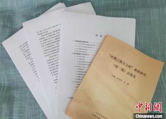 7月下旬,甘肅省社會科(ke)學院工作人員展示《絲綢之路(lu)古文明》第一(yi)階段考察(cha)報告(gao)打印版。 閆(yan)姣(jiao) 攝