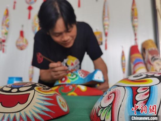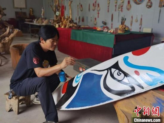 取(qu)材、挖空、刨光、勾(gou)線(xian)、著色……經過這些步驟,一(yi)個馬(ma)勺臉(lian)(lian)(lian)譜(pu)(pu)(pu)就(jiu)完(wan)成了(le)。馬(ma)勺臉(lian)(lian)(lian)譜(pu)(pu)(pu)由中國民間社火(huo)臉(lian)(lian)(lian)譜(pu)(pu)(pu)演化而來,已(yi)有數(shu)千年歷史,系列(lie)產(chan)品(pin)主要(yao)包括馬(ma)勺臉(lian)(lian)(lian)譜(pu)(pu)(pu)、梭子(zi)臉(lian)(lian)(lian)譜(pu)(pu)(pu)、鏟(chan)子(zi)臉(lian)(lian)(lian)譜(pu)(pu)(pu)、木锨臉(lian)(lian)(lian)譜(pu)(pu)(pu)等。9月初,甘肅省(sheng)隴南市徽(hui)縣馬(ma)勺臉(lian)(lian)(lian)譜(pu)(pu)(pu)的(de)省(sheng)級(ji)傳承(cheng)人馬(ma)龍,依舊在(zai)(zai)工作(zuo)室(shi)創作(zuo)。今年47歲的(de)他,堅守馬(ma)勺臉(lian)(lian)(lian)譜(pu)(pu)(pu)的(de)制作(zuo)技(ji)(ji)藝已(yi)有20余(yu)載,不僅傳承(cheng)了(le)社火(huo)臉(lian)(lian)(lian)譜(pu)(pu)(pu)和(he)(he)京劇臉(lian)(lian)(lian)譜(pu)(pu)(pu)的(de)古韻(yun),而且(qie)創新了(le)貼金、刻繪等技(ji)(ji)藝,在(zai)(zai)傳統中融入了(le)現代造型和(he)(he)色彩元素(su)。它(ta)的(de)作(zuo)品(pin)在(zai)(zai)網(wang)絡引起熱議:“臉(lian)(lian)(lian)譜(pu)(pu)(pu)畫在(zai)(zai)梭子(zi)上,厲害(hai)了(le)。”“寶(bao)藏(zang)非(fei)遺,期(qi)待下次(ci)打卡。”