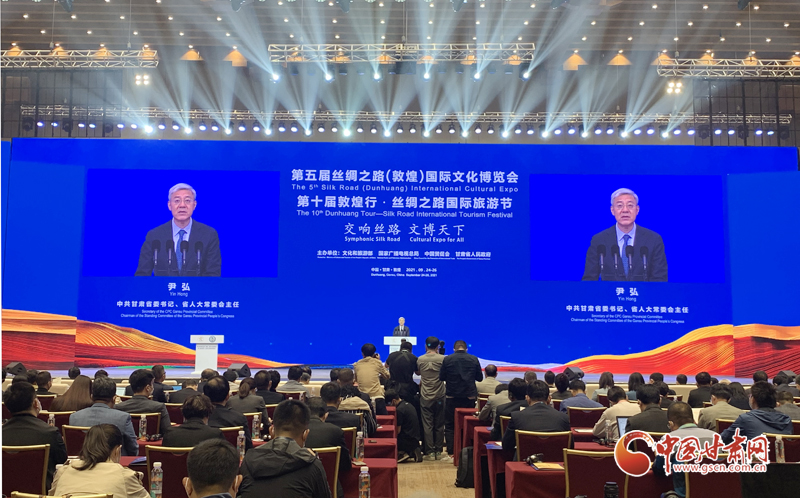 中國甘肅網9月24日訊(本(ben)網記(ji)者 宋芳科 楊亞楠(nan) 張(zhang)振國)9月24日(ri)上午,第五屆絲(si)綢之路(lu)(敦(dun)(dun)煌)國際文(wen)化(hua)博覽會(hui)和第十屆敦(dun)(dun)煌行·絲(si)綢之路(lu)國際旅(lv)(lv)游節開幕。本(ben)屆“一(yi)會(hui)一(yi)節”由文(wen)化(hua)和旅(lv)(lv)游部(bu)、國家廣播電(dian)視總局、中(zhong)(zhong)國國際貿易促進(jin)委(wei)員會(hui)、甘肅省(sheng)人民政府(fu)共同主辦,以“交響絲(si)路(lu) 文(wen)博天下”為主題,旨在進(jin)一(yi)步加(jia)強“一(yi)帶(dai)一(yi)路(lu)”人文(wen)交流的官方(fang)合作和民間往來(lai),增進(jin)共建(jian)“一(yi)帶(dai)一(yi)路(lu)”國家的文(wen)化(hua)認同。中(zhong)(zhong)共中(zhong)(zhong)央(yang)(yang)政治局委(wei)員、中(zhong)(zhong)央(yang)(yang)書記(ji)處書記(ji)、中(zhong)(zhong)宣部(bu)部(bu)長黃坤明以視頻(pin)方(fang)式發表(biao)主旨演講。