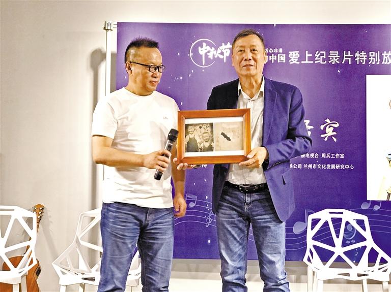 蘭(lan)州(zhou)市(shi)電影發行放映公司副(fu)經理燕兵(bing)將(jiang)老(lao)照片送給(gei)王海成