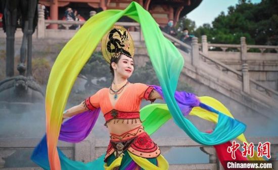 11月(yue)27日(ri),伴著幽(you)幽(you)古樂,婀(e)娜多(duo)姿(zi)的(de)(de)伎樂飛天舞、勁健舒展的(de)(de)反彈(dan)琵(pi)琶舞、靈動飄逸的(de)(de)飛天火焰綢舞,三種不同舞動形式的(de)(de)敦(dun)煌舞在“江南三大(da)名(ming)樓”之(zhi)一的(de)(de)黃鶴樓前同時演(yan)繹。舞蹈演(yan)員時而(er)翻(fan)轉琵(pi)琶,時而(er)揮動絲(si)綢,體態輕(qing)盈,翩若驚鴻(hong),在氤氳(yun)的(de)(de)霧氣映(ying)襯下宛如(ru)在仙境起舞。在26日(ri)至28日(ri)舉辦的(de)(de)首屆中國(guo)(武漢)文化(hua)旅游博覽會上,甘肅組團推介熱門(men)文旅,“飛天秀”是其中一項(xiang)。