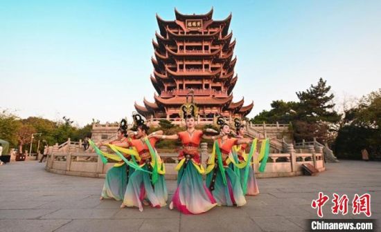圖(tu)為“飛天仙子”在黃鶴樓(lou)前起(qi)舞。 甘肅省(sheng)文(wen)化和旅游廳供圖(tu)