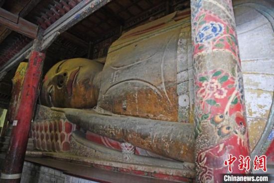 12月中旬,甘肅張掖大佛(fo)寺中重要文物的“數(shu)字孿生”打(da)造工作已進入新階段。圖為木胎泥塑(su)臥佛(fo)。 楊(yang)艷(yan)敏 攝