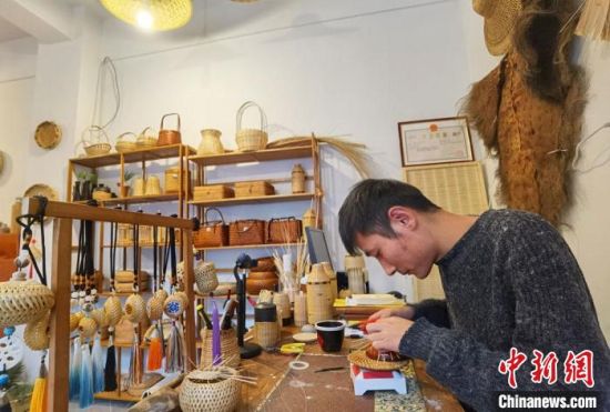 圖為承襲祖輩竹(zhu)編(bian)手藝(yi)的(de)(de)“90后”張照杰正忙著趕制一件“私人訂制”的(de)(de)竹(zhu)編(bian)手工品。 馮志(zhi)軍 攝