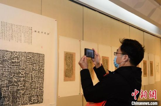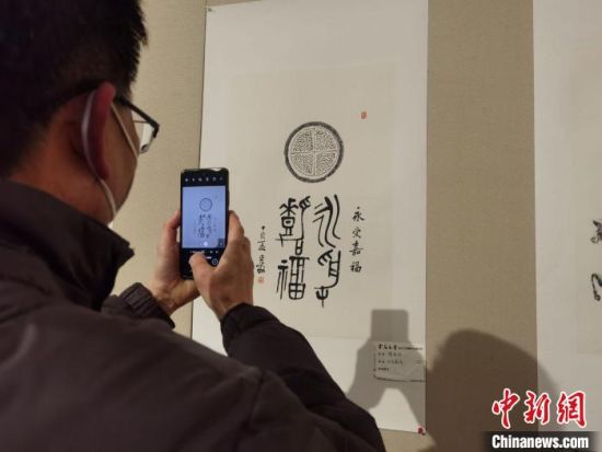 圖為觀展者用手(shou)機記(ji)錄傳拓技藝。 崔琳 攝(she)