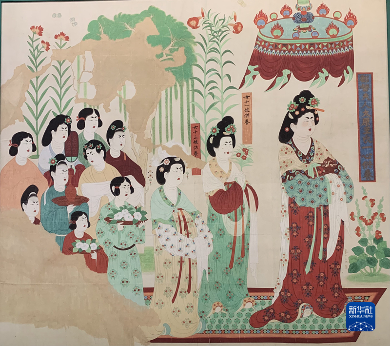 《都(dou)督夫人(ren)禮佛圖》復制品(段文杰臨摹)。新華社(she)記者(zhe) 張玉潔 攝