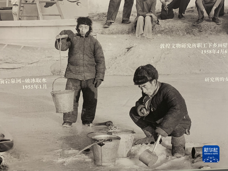 展(zhan)覽的第二部(bu)分,主(zhu)要呈現1944年(nian)“國立(li)敦煌藝術研(yan)究(jiu)所(suo)”成立(li)后,幾代(dai)文化(hua)工作(zuo)(zuo)者扎根大漠、開拓進取(qu)(qu)的歷程。該部(bu)分展(zhan)出了大量老照片(pian),如(ru)上世紀五六十年(nian)代(dai),文化(hua)工作(zuo)(zuo)者破冰取(qu)(qu)水(shui)、耕作(zuo)(zuo)勞動(dong)的場景(jing)。