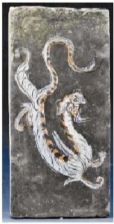 這件(jian)高臺縣博(bo)物館館藏(zang)的(de)漢晉彩繪虎畫像磚(zhuan),長(chang)42.5厘米(mi),寬20厘米(mi),厚6.5厘米(mi),出土于駱駝城苦水口1號墓(mu)葬(zang),屬國(guo)家二級文物。作為“四(si)神”形(xing)象(xiang)之一,多見于墓(mu)葬(zang)中磚(zhuan)砌(qi)門飾構件(jian)之上。