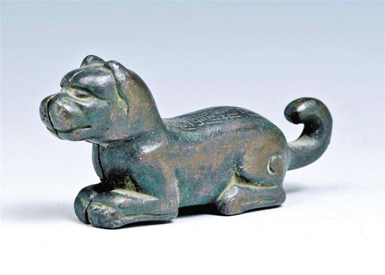 這件(jian)山(shan)丹縣博物館館藏的(de)銅鑄虎(hu)(hu)符(fu)通(tong)長(chang)9.5厘米(mi),兩(liang)半相合在(zai)一(yi)起,呈(cheng)臥虎(hu)(hu)式,合符(fu)內側有三(san)個卯榫符(fu)合。虎(hu)(hu)符(fu)銘文清(qing)晰,造(zao)型優美。虎(hu)(hu)背部兩(liang)半有錯銀篆書銘文:“與(yu)(yu)(yu)長(chang)社太守”“為虎(hu)(hu)符(fu)左二”。其為國家二級文物。這件(jian)虎(hu)(hu)符(fu)虎(hu)(hu)目(mu)平視面容溫和,伏臥姿態和上(shang)翹的(de)虎(hu)(hu)尾顯得俏皮又生動。與(yu)(yu)(yu)威風(feng)凜(lin)凜(lin)或者勁瘦有力的(de)虎(hu)(hu)符(fu)不(bu)同,圓(yuan)圓(yuan)的(de)虎(hu)(hu)頭、圓(yuan)潤的(de)四肢與(yu)(yu)(yu)后(hou)臀,增添了(le)幾分憨厚(hou)可愛(ai)。