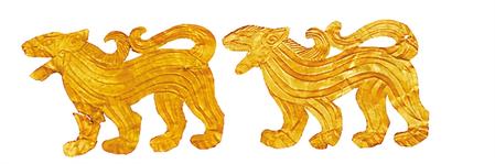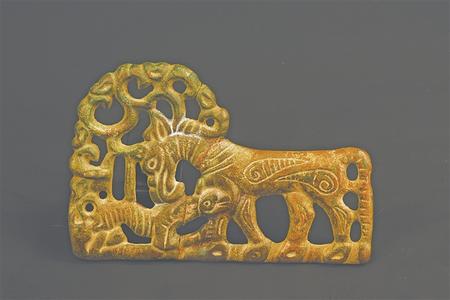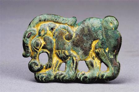 受草原(yuan)文(wen)(wen)化影響(xiang),虎(hu)的(de)(de)(de)(de)造型更具藝術性,形(xing)(xing)式(shi)亦豐(feng)富多彩。甘(gan)肅省(sheng)博(bo)物(wu)(wu)(wu)館藏(zang)的(de)(de)(de)(de)西(xi)周虎(hu)紋耳(er)(er)形(xing)(xing)銅鉞,整體似半環,鑄(zhu)(zhu)猛虎(hu)紋,虎(hu)背(bei)為(wei)刃(ren)。尾下有(you)(you)短胡兩穿(chuan),尾、雙爪上(shang)鑄(zhu)(zhu)凹槽(cao),虎(hu)首(shou)下彎,張(zhang)口(kou)含銎(qiong),露牙睜目,領(ling)內有(you)(you)一(yi)圓形(xing)(xing)穿(chuan)孔。甘(gan)肅省(sheng)文(wen)(wen)物(wu)(wu)(wu)考(kao)古(gu)研究(jiu)所(suo)藏(zang)的(de)(de)(de)(de)戰(zhan)國(guo)金(jin)帶鉤(gou),鉤(gou)首(shou)為(wei)長頸(jing)龍(long)首(shou)狀,頸(jing)部(bu)為(wei)三棱狀,肩(jian)(jian)部(bu)三角形(xing)(xing)邊框內鏤空(kong)雕鑄(zhu)(zhu)對稱和狼形(xing)(xing)圖(tu)案(an)(an)。鉤(gou)身(shen)為(wei)長方形(xing)(xing),邊框內鏤空(kong)雕刻一(yi)組正反相對稱的(de)(de)(de)(de)虎(hu)噬(shi)大角羊(yang)(yang)圖(tu)案(an)(an)。張(zhang)家川回(hui)族自(zi)治縣(xian)博(bo)物(wu)(wu)(wu)館藏(zang)的(de)(de)(de)(de)戰(zhan)國(guo)晚期的(de)(de)(de)(de)虎(hu)形(xing)(xing)金(jin)飾片(pian),虎(hu)尖耳(er)(er)上(shang)翹,大嘴張(zhang)開,鬃毛卷曲上(shang)翹,尾前(qian)卷于背(bei)部(bu)與(yu)鬃毛相連,四(si)足著地(di)做行(xing)走狀,栩栩如(ru)生地(di)展現(xian)了虎(hu)行(xing)走的(de)(de)(de)(de)動(dong)感之態(tai)。甘(gan)肅省(sheng)博(bo)物(wu)(wu)(wu)館藏(zang)的(de)(de)(de)(de)戰(zhan)國(guo)虎(hu)噬(shi)羊(yang)(yang)紋金(jin)飾片(pian),虎(hu)張(zhang)口(kou)露齒(chi),垂首(shou)蹲(dun)踞,虎(hu)口(kou)銜羊(yang)(yang),前(qian)爪按住羊(yang)(yang)肩(jian)(jian)部(bu),后爪抓住羊(yang)(yang)臀部(bu),羊(yang)(yang)四(si)肢跪地(di)作掙扎(zha)狀,活靈活現(xian)地(di)展現(xian)出猛虎(hu)捕食羊(yang)(yang)的(de)(de)(de)(de)瞬(shun)間動(dong)態(tai),形(xing)(xing)象(xiang)逼真。這些(xie)虎(hu)文(wen)(wen)物(wu)(wu)(wu)都(dou)是此次展覽中的(de)(de)(de)(de)亮點。