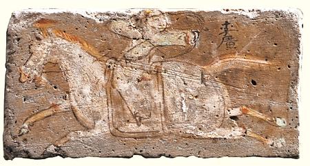 李廣射虎彩繪畫像磚/西晉 敦煌市博物(wu)館藏(本(ben)版(ban)圖片由(you)甘肅(su)省(sheng)博物(wu)館提供)
