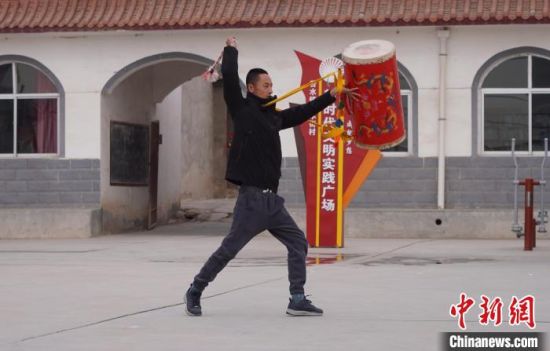 中(zhong)新(xin)網蘭州2月18日電 (徐雪 魏宇嘉)2月中(zhong)旬,在甘肅蘭州市永登縣苦(ku)水(shui)鎮,33歲(sui)鄧鑫擊打起(qi)太(tai)平(ping)鼓(gu),紅色的鼓(gu)或被擎于頭頂,或被旋至身(shen)后,騰起(qi)跨越(yue)間(jian),鼓(gu)鞭(bian)捶(chui)打出陣陣鼓(gu)聲,頓挫磅礴,具有穿(chuan)透(tou)力。