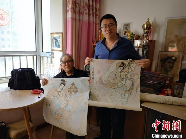 3月(yue)上旬,《絲路(lu)花雨·誕生(sheng)(sheng)》作者陳曉斌(右)拜訪今年86歲的舞(wu)美設(she)計師李明強(右)老先生(sheng)(sheng)。 王先孟 攝(she)