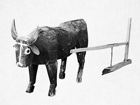 武威(wei)漢墓出土的木牛拉犁。