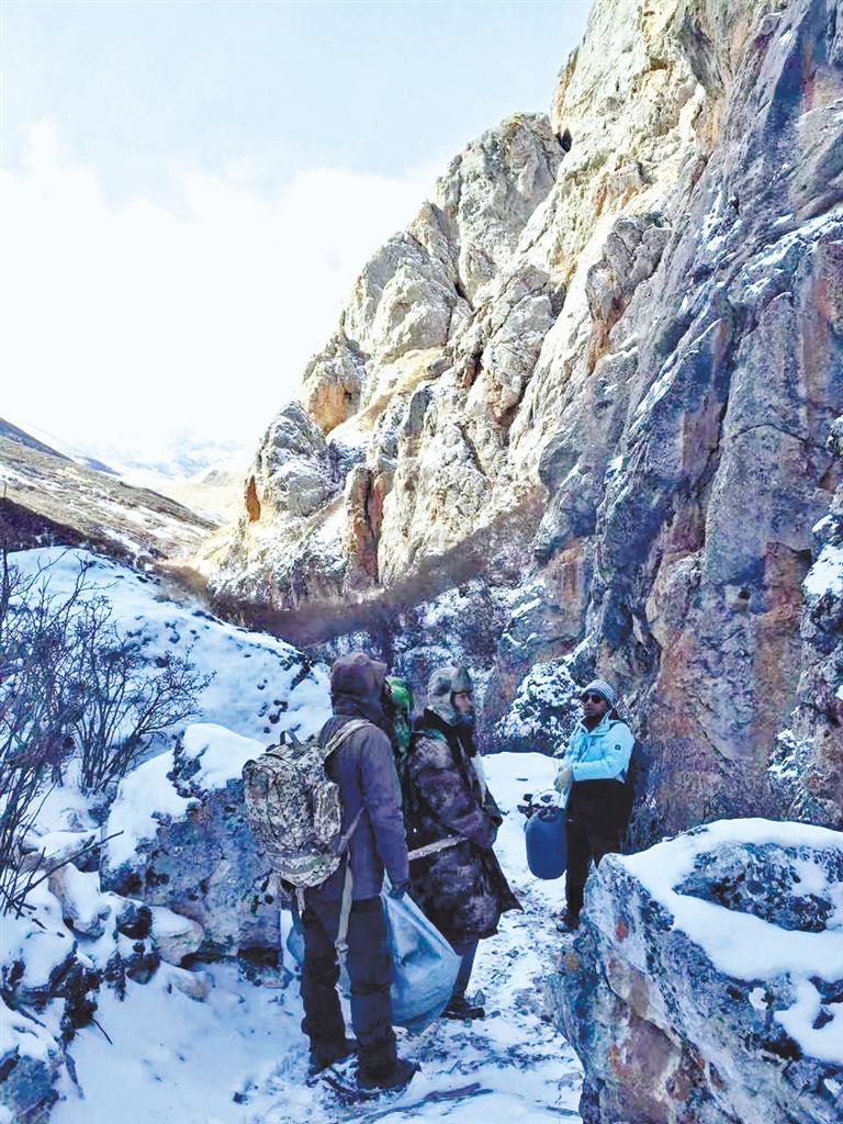 攝(she)制組尋找(zhao)雪豹的足(zu)跡(ji)