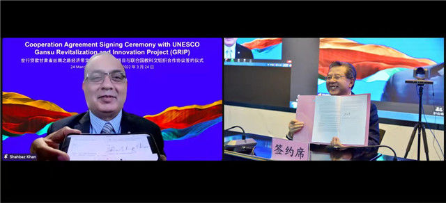 與創新項目與聯合國教科文組織技術援助合作協議簽約儀式,旨在運用甘肅文化和創意資源推進文化遺產保護傳承與創新發展。