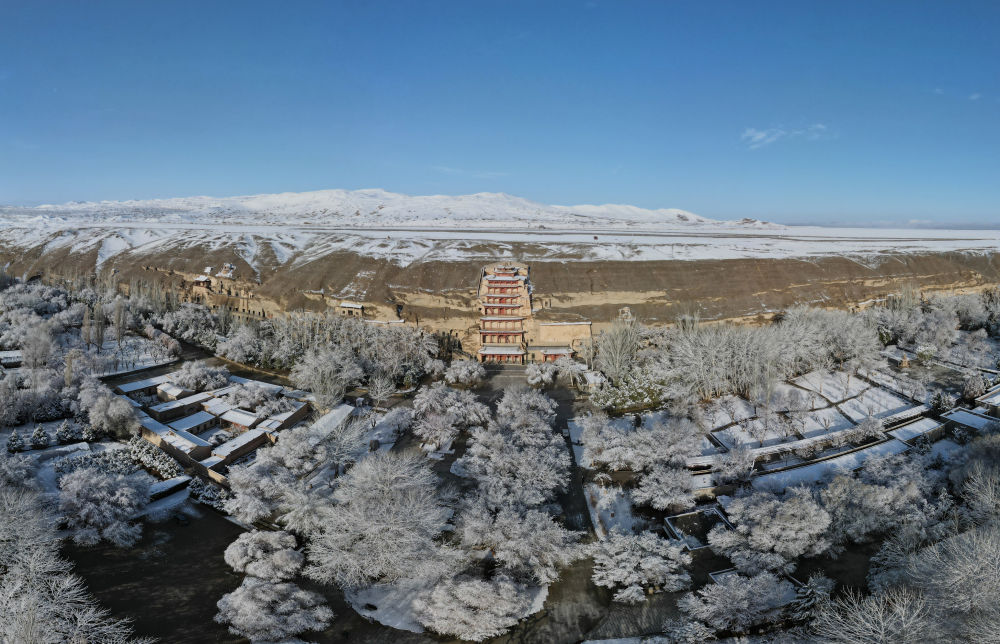 這是3月25日拍攝的敦煌(huang)莫(mo)高(gao)窟景區(qu)雪景(無人(ren)機照片)。新華社記者(zhe)張智(zhi)敏 攝