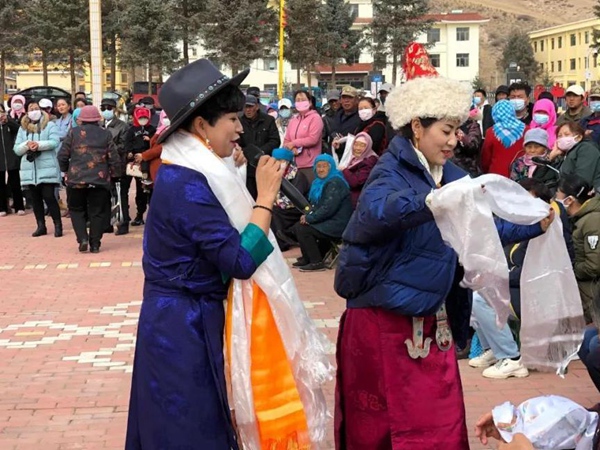 肅南縣(xian)民(min)族歌(ge)舞(wu)團(tuan)在鄉鎮慰問(wen)演(yan)出。肅南縣(xian)民(min)族歌(ge)舞(wu)團(tuan)供(gong)圖