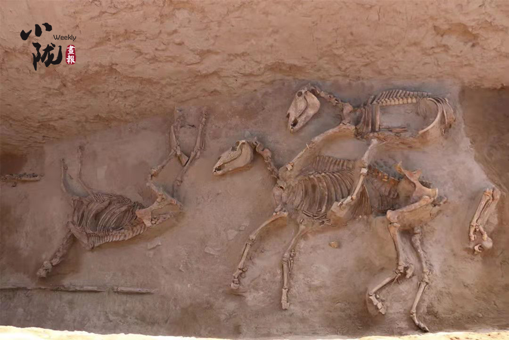 墓道(dao)內均(jun)有整馬(ma)殉葬,1-3匹(pi)不等,亦見有燒殉的羊骨(gu)、牛骨(gu)等。墓室內出土有漆、木、陶、石(shi)、革及各類金屬器等隨葬品(pin)290余件,以(yi)殘漆木器居多,部分漆木器上有彩繪,并(bing)貼有金、銀箔,做工精(jing)美(mei),裝(zhuang)飾華麗。