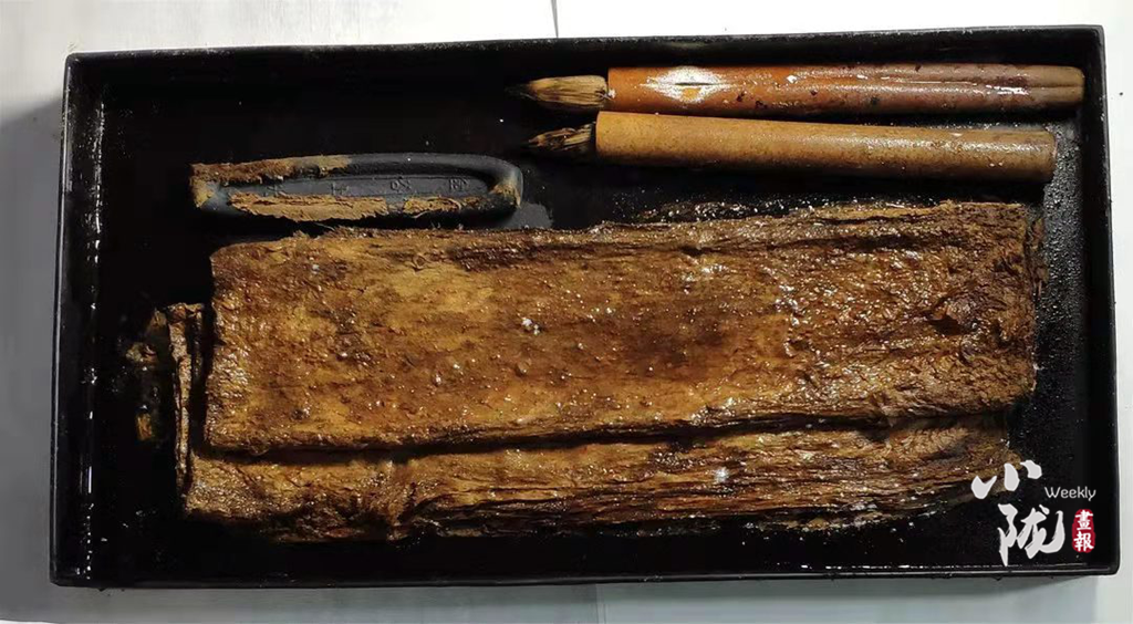 慕(mu)容智墓(mu)出土漆盒內的筆墨紙