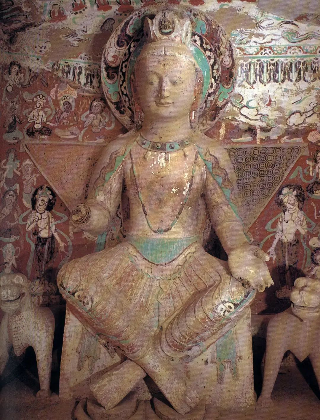 莫高(gao)窟第275窟西壁交腳菩薩(sa)旁邊的獅子(zi) | 圖源《中國(guo)石窟·敦煌莫高(gao)窟》