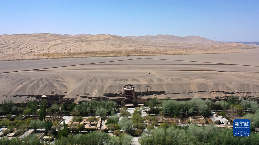 這是4月18日拍攝的莫高窟窟區(無人機照片)。新華社記者 陳斌 攝