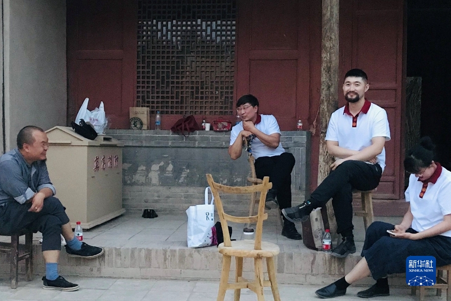 2021年6月,劉小同(右二)和同事一起參加文藝活動排練。新華社發(受訪者供圖)