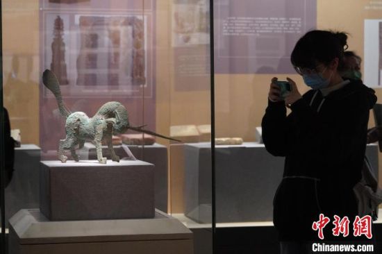 5月18日,游客來到位于蘭州的甘肅省博物館內參觀《大(da)道攸歸:五涼文化展》。圖為“銅獨角獸”。 九美旦增 攝