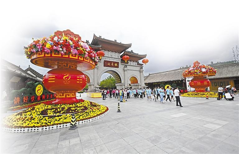 伏羲(xi)廟廣場(chang)上,來自五湖四海的嘉賓(bin)代表身穿深色(se)服(fu)裝,佩帶黃色(se)綬(shou)帶肅然而立。這里,一場(chang)盛(sheng)大的祭拜(bai)大典即將開啟。