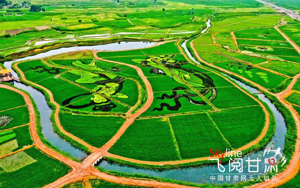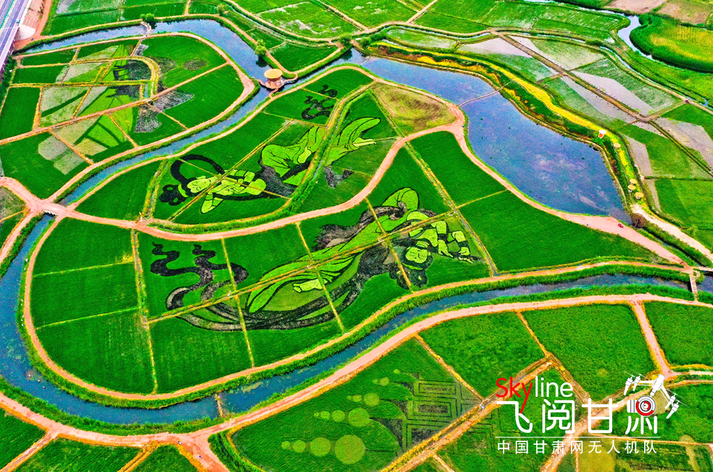 7月13日清晨,一場(chang)小(xiao)雨過后,張(zhang)掖市甘州區(qu)烏江(jiang)鎮新河田(tian)園綜(zong)合體稻田(tian)景(jing)觀區(qu)內2000多(duo)畝稻田(tian)塵埃盡洗,一幅幅彩稻畫栩栩如生,從高處俯瞰,田(tian)園風光和生態美景(jing)展現在人們眼前。