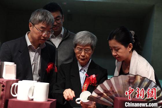 2018年8月,樊錦詩(中)在莫高窟(ku)數字陳(chen)列中心參觀(guan)文創(chuang)產品(pin)。(資料圖(tu)) 楊艷敏(min) 攝