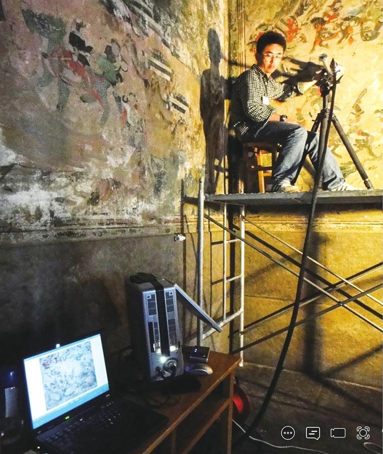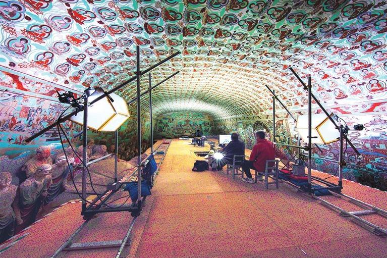 莫高窟(ku)(ku)第148窟(ku)(ku)壁畫數(shu)字化采集現場。