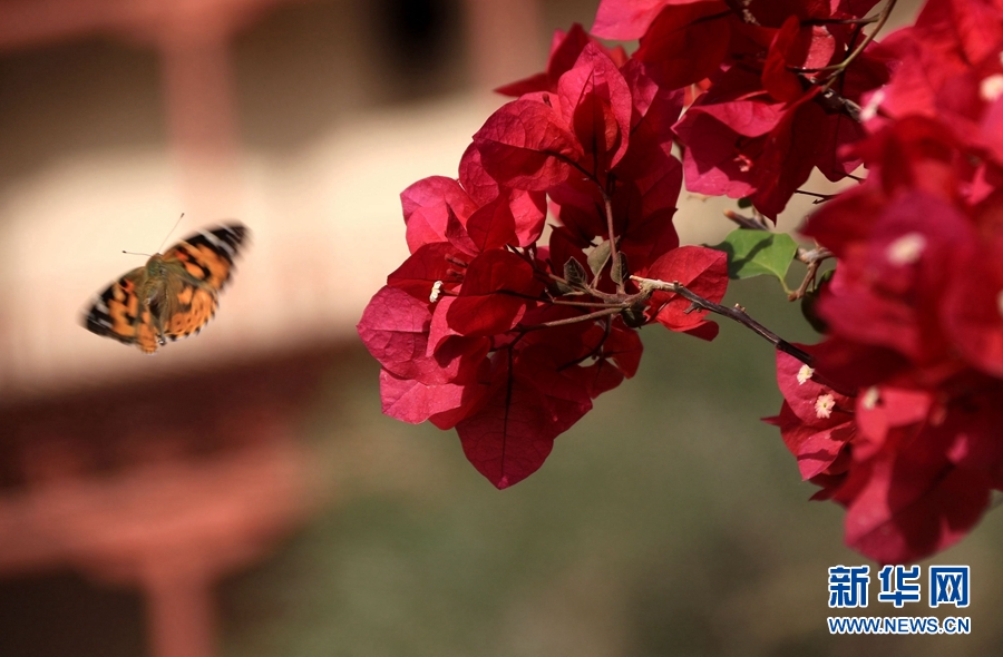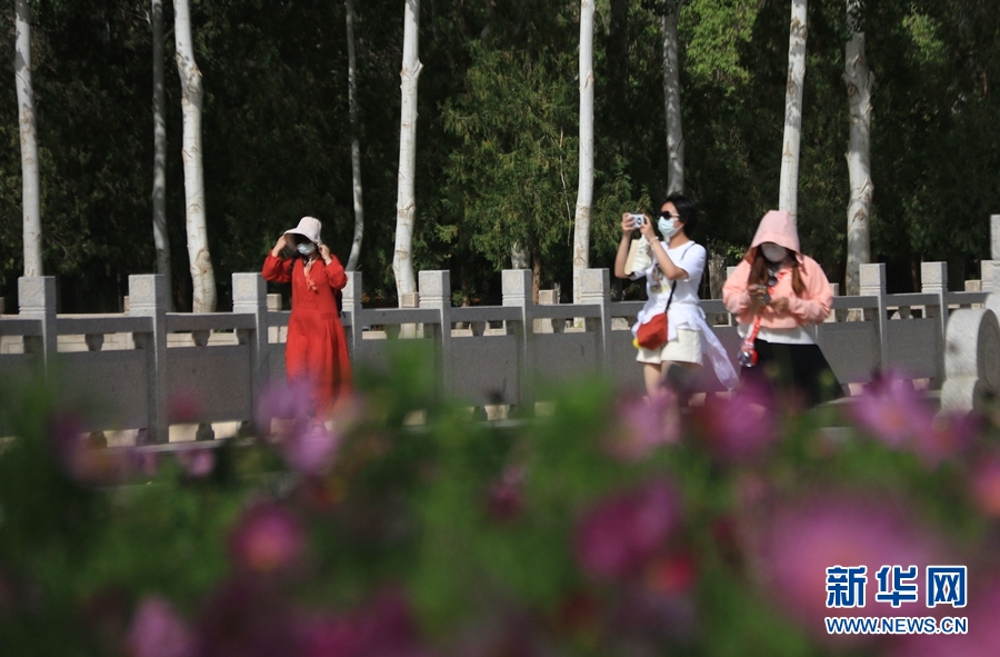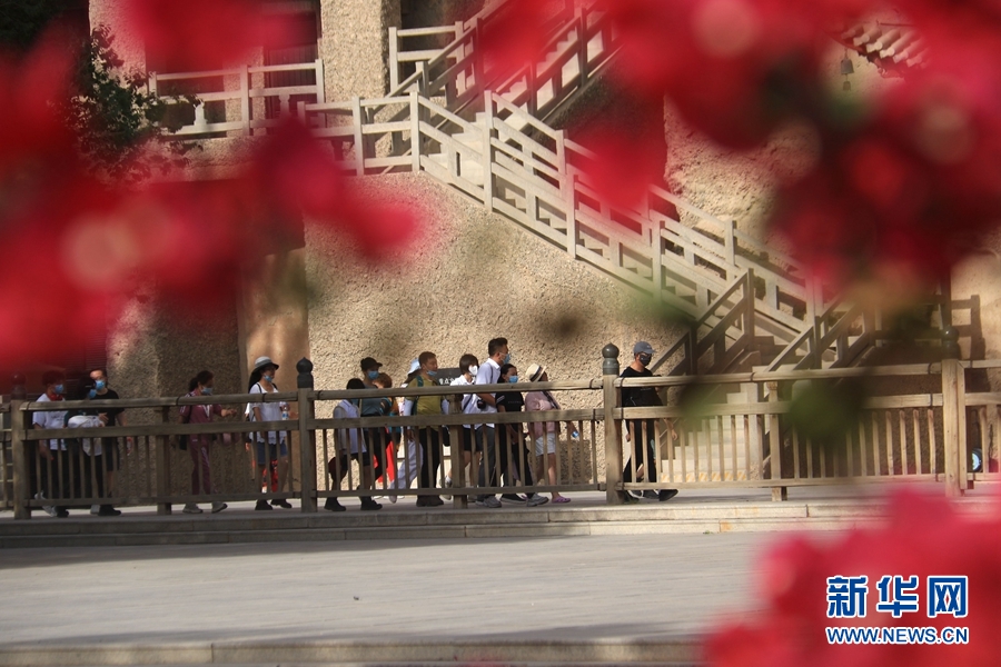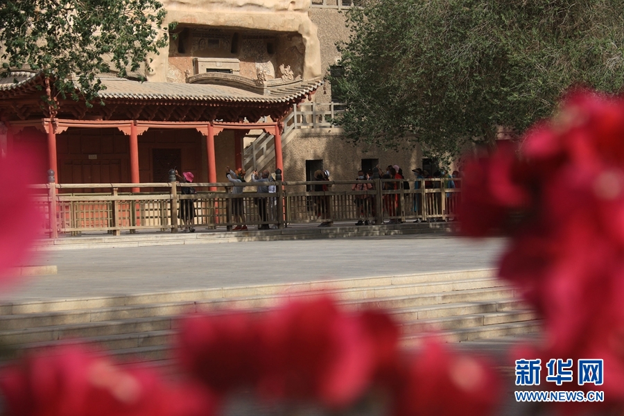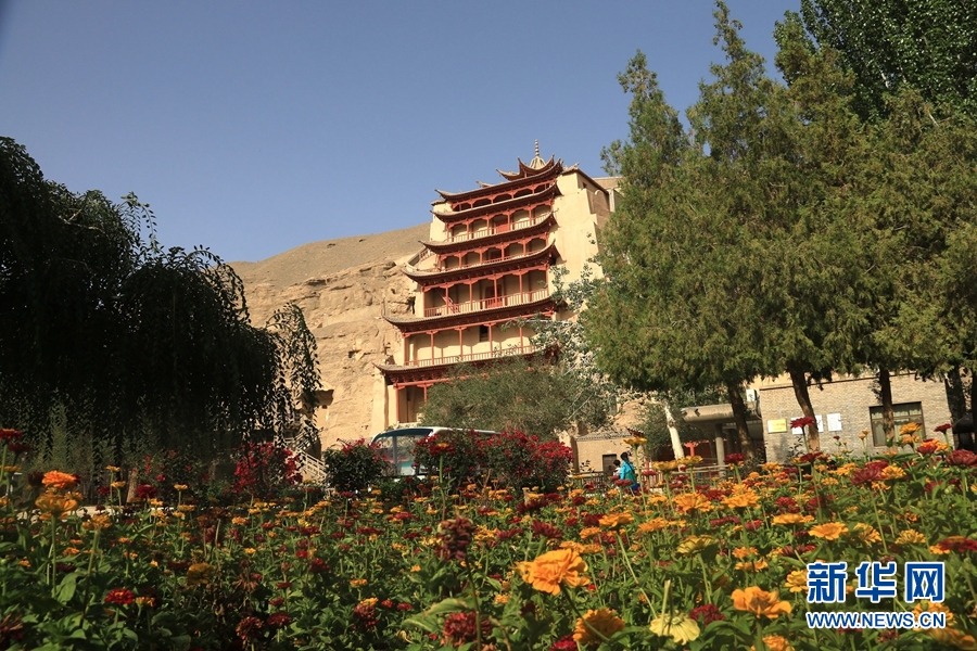 盛夏時節,甘肅省敦煌市(shi)莫高窟景區在三(san)角梅(mei)、百日(ri)菊等(deng)花草的映襯下,顯得分外美麗迷(mi)人。