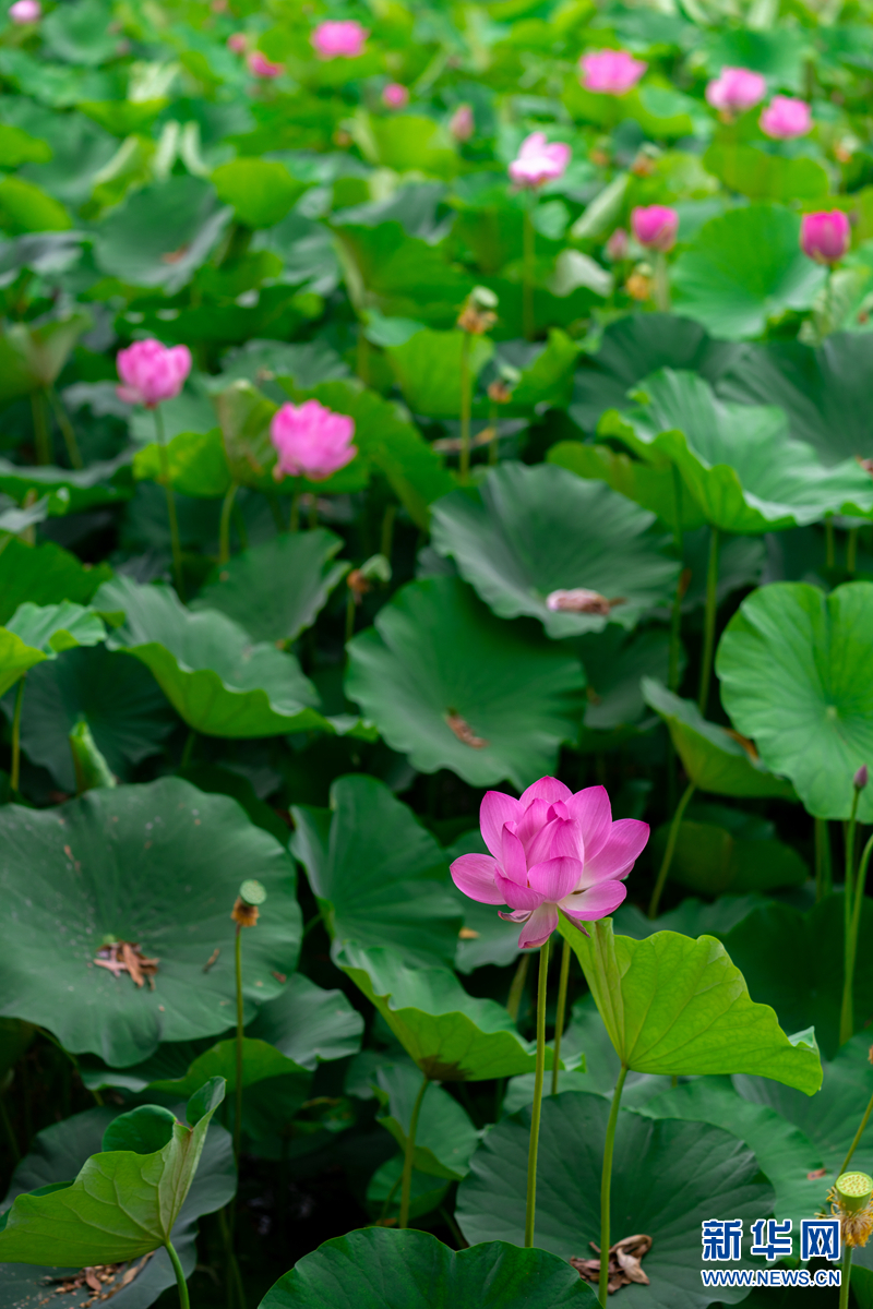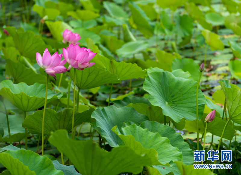 盛夏(xia)(xia)時節,甘肅省隴南市成縣裴公湖里(li)的荷花競(jing)相綻放(fang),在炎炎夏(xia)(xia)日中帶來(lai)一絲(si)清涼。新(xin)華網發(陳爭強 攝)