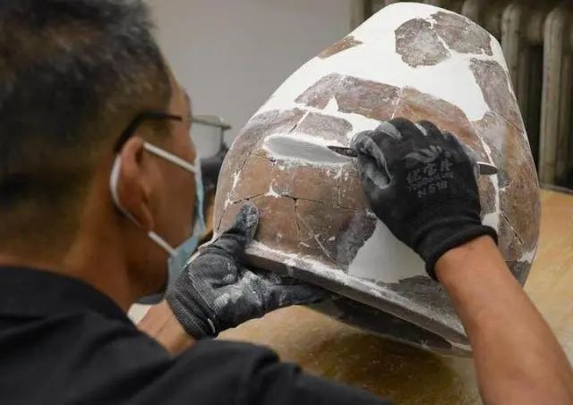 文物工(gong)作者對南佐遺址內出土的陶器進行修復(8月(yue)25日攝)。新華社記者 李賀 攝