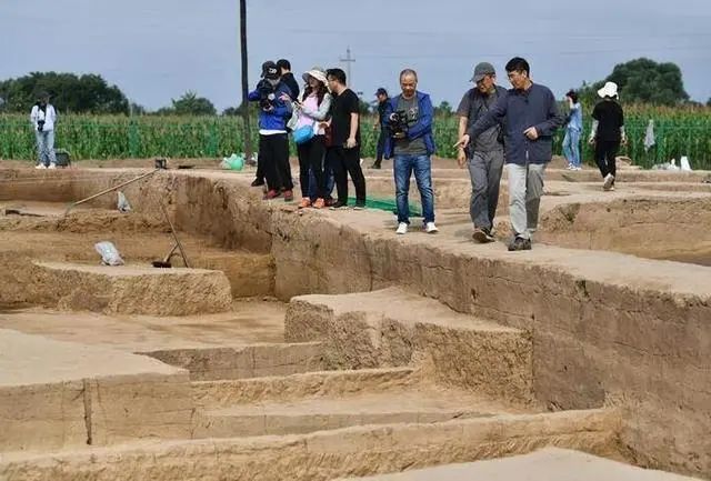 考古(gu)專家們在南佐遺(yi)址核心(xin)區大型(xing)宮殿(dian)建筑發掘(jue)現場考察(8月23日攝)。新華社(she)記(ji)者 李(li)賀 攝