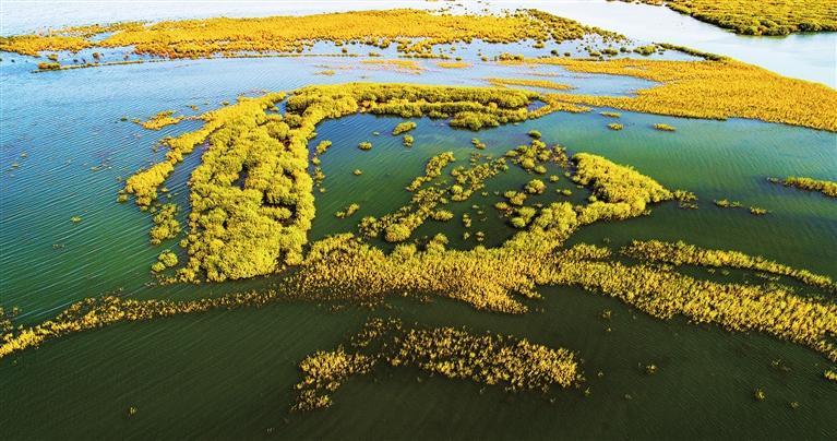 進入(ru)10月,位于武威市民勤(qin)縣的(de)(de)亞洲(zhou)最大(da)沙漠水(shui)(shui)庫——紅崖(ya)山水(shui)(shui)庫群鳥(niao)(niao)歡鳴(ming),湖(hu)(hu)水(shui)(shui)碧藍。水(shui)(shui)柳倒映之下(xia),猶如一朵朵金(jin)黃的(de)(de)秋菊盛開。時(shi)值水(shui)(shui)鳥(niao)(niao)遷徙(xi),大(da)雁、白(bai)鷺、赤麻鴨、大(da)天鵝等水(shui)(shui)鳥(niao)(niao)或在空中(zhong)翱翔,或在湖(hu)(hu)中(zhong)覓食,金(jin)黃金(jin)黃的(de)(de)胡楊樹葉閃爍鋪呈,一層又一層光暈,映照出一幅(fu)大(da)漠水(shui)(shui)庫的(de)(de)金(jin)秋勝景。