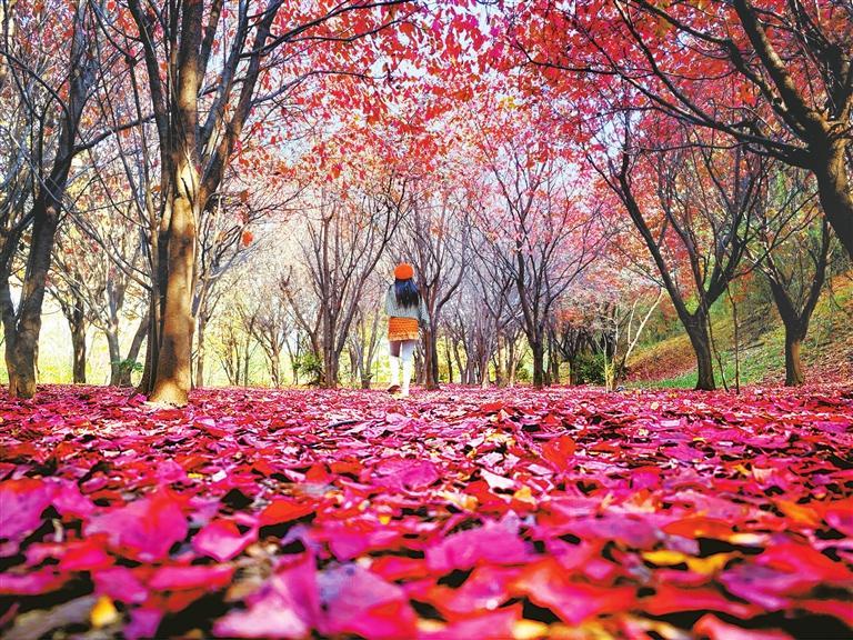 深(shen)秋的(de)天(tian)(tian)水市秦州(zhou)區南郭寺大(da)景區被豐(feng)富多(duo)彩(cai)的(de)顏色(se)包圍,蜿蜒曲折的(de)道(dao)路兩旁,各種樹(shu)木色(se)彩(cai)斑斕(lan)、美(mei)(mei)(mei)(mei)不勝(sheng)收。一陣微風(feng)吹過,五彩(cai)斑斕(lan)的(de)樹(shu)葉落到山(shan)間(jian)的(de)步(bu)道(dao)上,鋪(pu)就了一層“多(duo)彩(cai)絢麗的(de)地毯”。漫步(bu)其中(zhong),一幅人(ren)(ren)與自然各美(mei)(mei)(mei)(mei)其美(mei)(mei)(mei)(mei)、美(mei)(mei)(mei)(mei)美(mei)(mei)(mei)(mei)與共(gong)的(de)美(mei)(mei)(mei)(mei)麗畫卷依山(shan)鋪(pu)就開來,迷(mi)醉游(you)人(ren)(ren)。那一刻,詩(shi)圣杜甫(fu)《秦州(zhou)雜詩(shi)》秋天(tian)(tian)里的(de)南郭寺,在陽光的(de)輝映(ying)下,滿目秋色(se)皆(jie)是美(mei)(mei)(mei)(mei)景、皆(jie)是詩(shi)意。