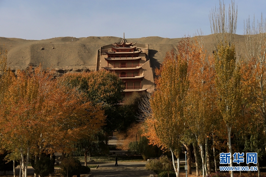 11月5日,在甘肅省敦(dun)煌市莫高(gao)窟景(jing)區拍(pai)攝的秋景(jing)。新華(hua)網(wang)發 (張曉亮 攝)