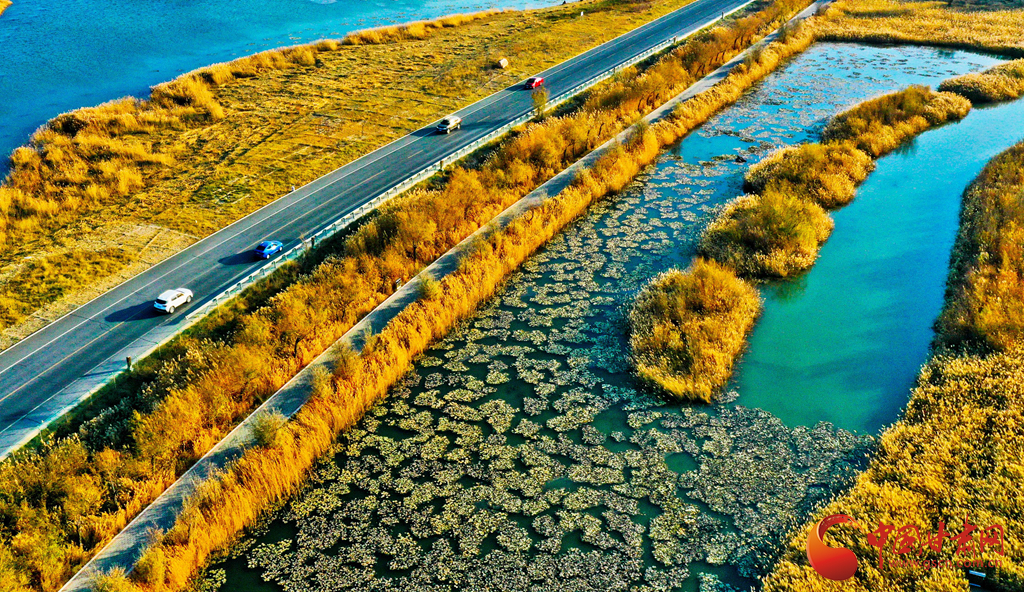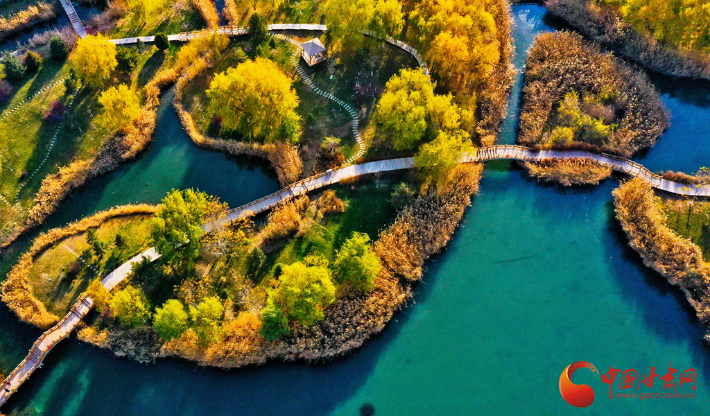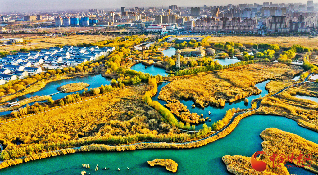 11月7日,濕地環繞下的(de)張掖市甘州區(qu),展(zhan)現(xian)出了(le)一幅人與自然和(he)諧共生(sheng)的(de)美好畫卷。