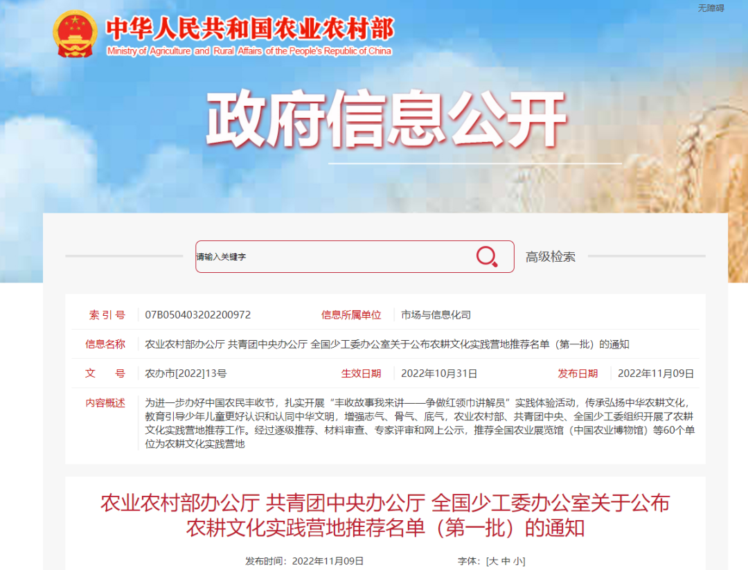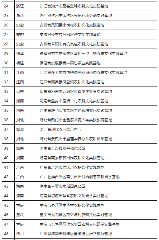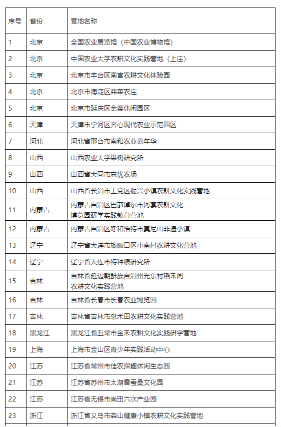 農(nong)耕文(wen)化實踐營地推薦名單(dan)(第一批)
