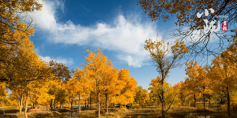 秋風起時(shi),一(yi)(yi)樹金黃在湛藍的(de)(de)(de)天空下(xia)連綿不絕,映著湖面,和流云飄逸的(de)(de)(de)藍天一(yi)(yi)起,綻放成一(yi)(yi)幅(fu)壯麗的(de)(de)(de)圖景。