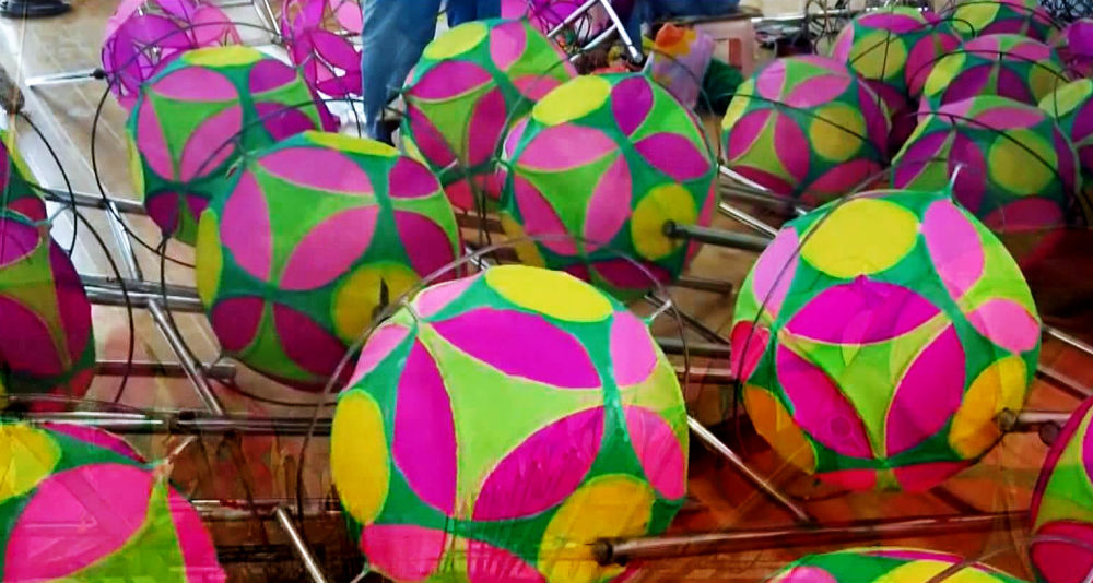 張安邦今年65歲,自其(qi)太(tai)祖輩起,代(dai)代(dai)都是(shi)(shi)(shi)技藝嫻熟的(de)滾燈(deng)(deng)(deng)人,到他手(shou)里已經是(shi)(shi)(shi)第(di)三(san)代(dai)了(le)。明清時的(de)滾燈(deng)(deng)(deng),燈(deng)(deng)(deng)架、燈(deng)(deng)(deng)盤、轉軸都是(shi)(shi)(shi)木(mu)制(zhi)的(de),花(hua)燈(deng)(deng)(deng)是(shi)(shi)(shi)用竹條或柳條編(bian)織,解放前改成了(le)羅圈骨架,而(er)現在經過(guo)他改良(liang)的(de)景泰滾燈(deng)(deng)(deng),則是(shi)(shi)(shi)用高碳鋼絲制(zhi)作而(er)成。