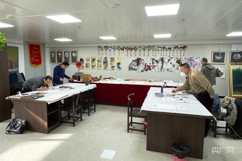 市(shi)民在(zai)美(mei)術館內(nei)進行(xing)書(shu)畫(hua)創作(央廣網(wang)發 慶(qing)陽市(shi)委宣(xuan)傳(chuan)部(bu) 供(gong)圖)